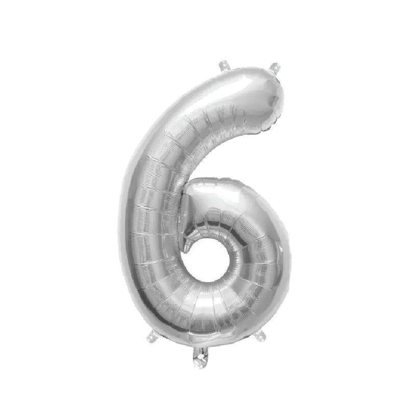 Балон ЦЕЛОФАН ЦИФРИ СРЕБРО 80см №6