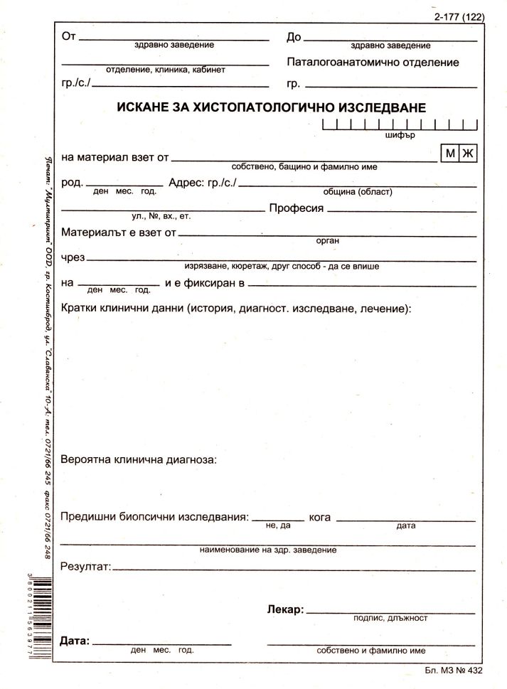 Искане за хистологично изследване 2-177