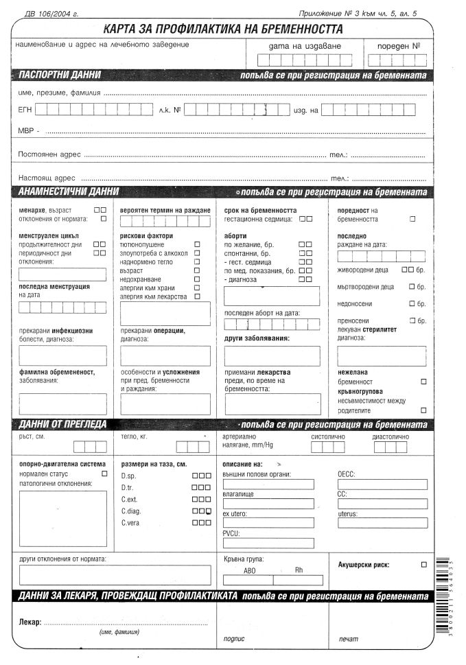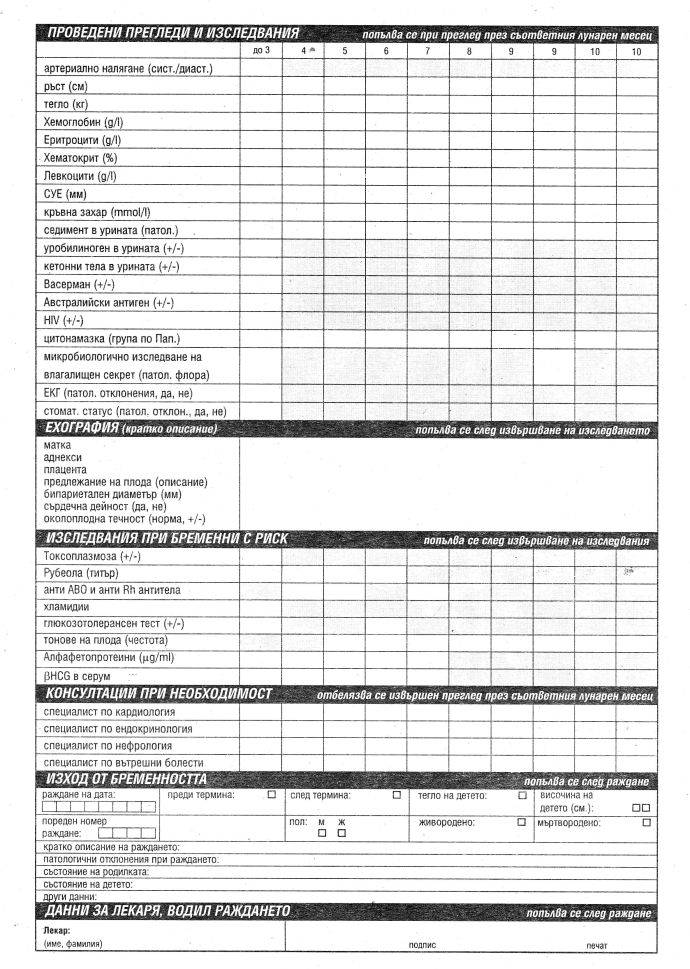 Карта за профилактика на бременноста