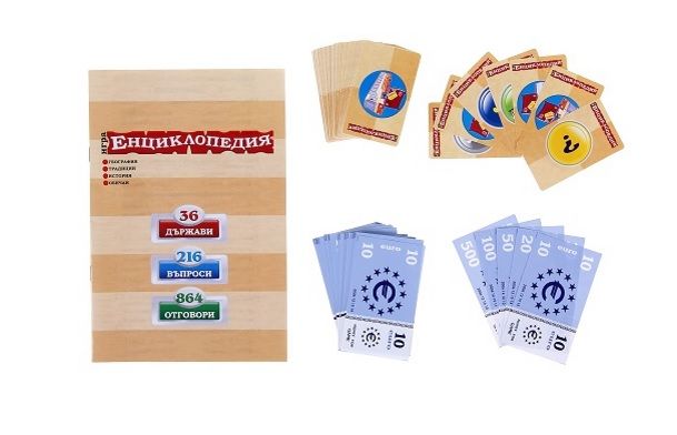 Енциклопедия е игра за възрастни и за деца в училищна възраст. Могат да участват от двама до четирима играчи. Пътувайки по света, чрез играта, ще научите интересни факти за географията, история, традициите и обичаите на различни държави. Ще има изненади по време на вашето пътуване, различни клопки и предизвикателства.