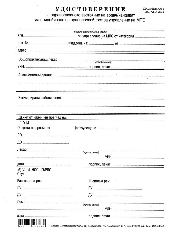 Медицинско за шофьор А5 вестник