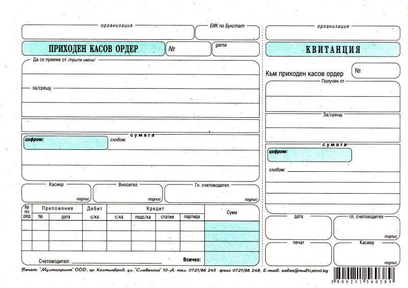 Приходен касов ордер 1-1400 вестник