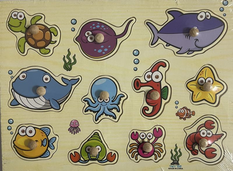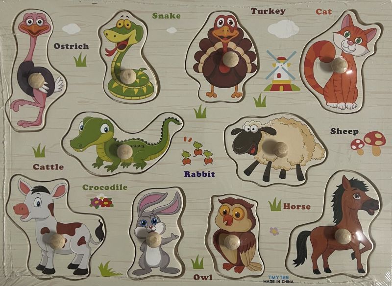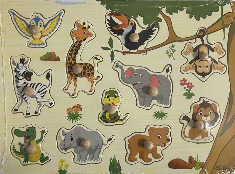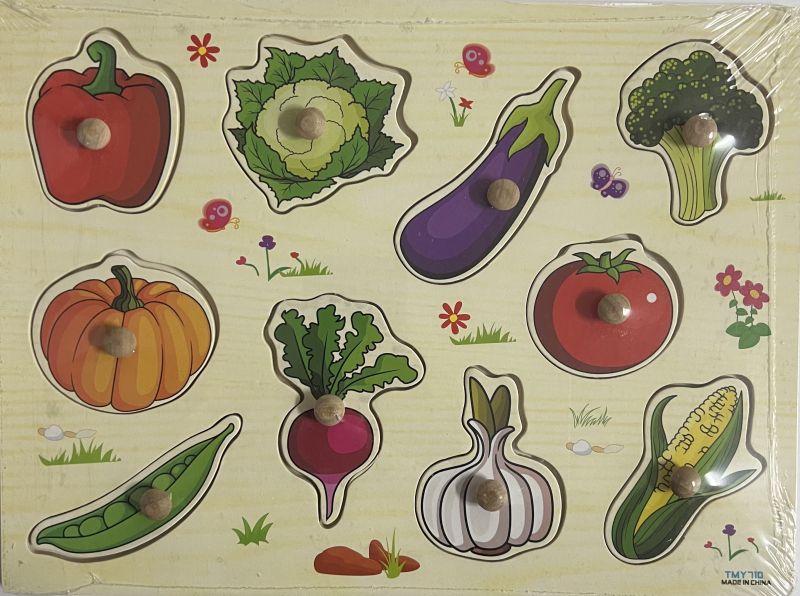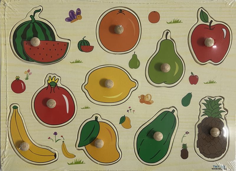 Пъзелът се състои от 1 дървена рамка и десет пъзел парчета с малки дървени дръжки за по-лесна манипулация. Насърчавайте интереса към пъзела чрез задаване на въпроси: Какво е това? Какво е на цвят? Какъв вкус има? и др.