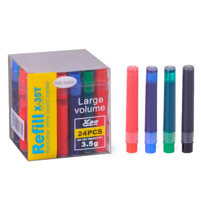 Комплект от 24 броя пълнители за маркери за бяла дъска, готови да вдъхнат нов живот на вашите маркери.