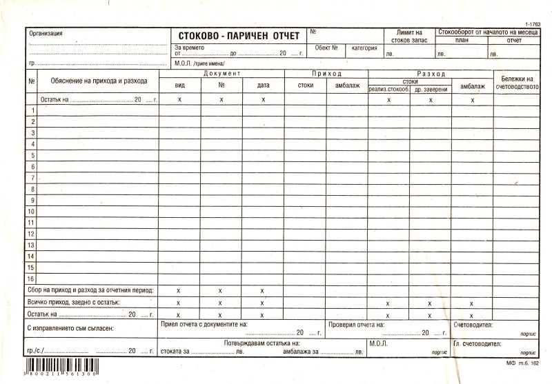 Стоково-паричен отчет 2/3А4 Вестник