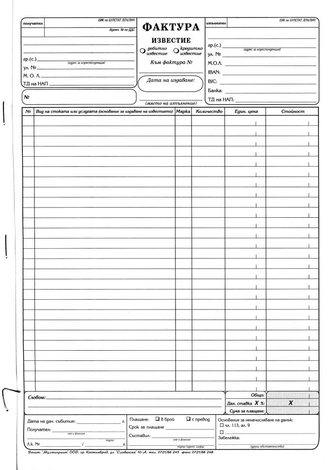 Фактура А4 химизирана