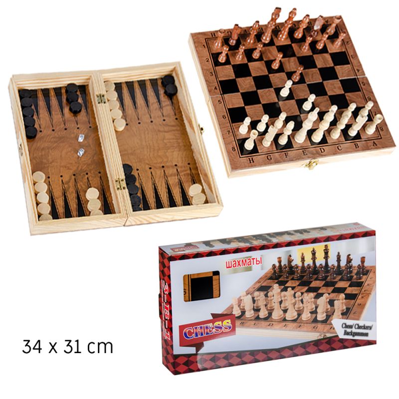 Шах + Табла дървен СРЕДЕН 3830 в кутия