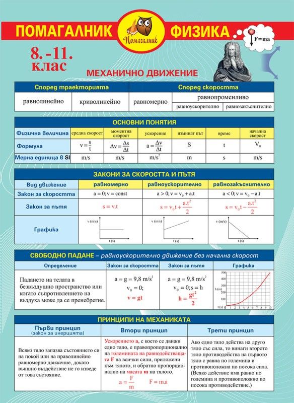 - Свободно падане (определение, закон за скоростта, закон за пътя, графика). Принципи на механиката (I-III).