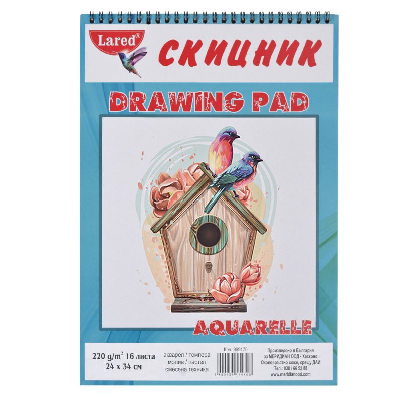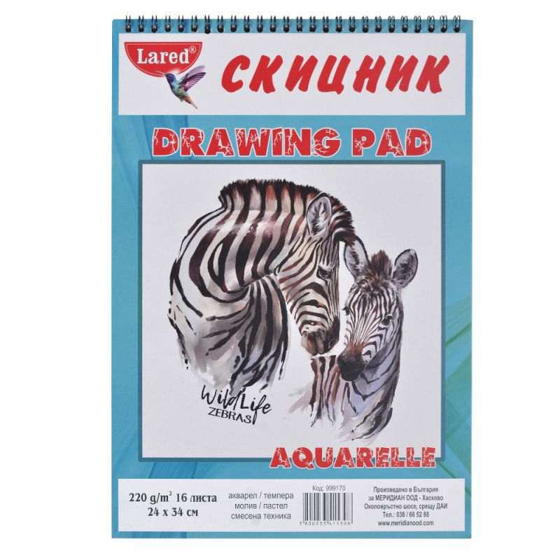 Скицник АКВАРЕЛ 24*34см А4 + ЛАРЕД 220гр 16л.