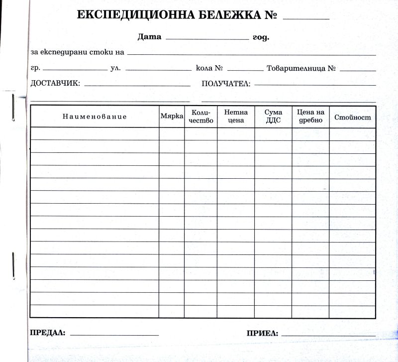 Експедиционна бележка 2/3А4 ХИМИЗИРАНА