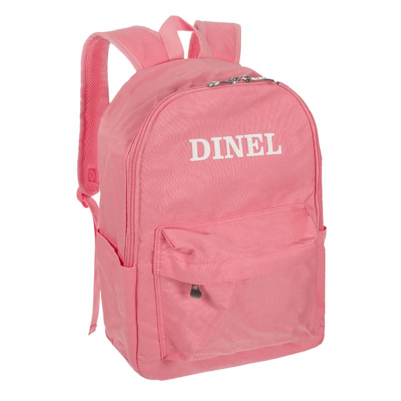 Раницата се отличава с изчистен и модерен дизайн в красив розов цвят, който придава свеж и младежки вид. С надпис "DINEL" отпред, тя е не само практична, но и стилна.